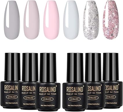 Amazon Com Rosalind Gel Nail Polish Set 6pcs Glitter Baby Pink Sparkle Grey Elegant Colors Perfect For Autumn And Winter Nail Art Manicure Kit Soak Off Led Gel 7ml Christmas Gifts Set Beauty
