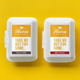 Takeout and delivery labels are prime spaces to include your logo color themes and any other details that will resonate with customers. Durable and waterproof materials available in cut-to-size or roll label type. Flexible size options including custom.
