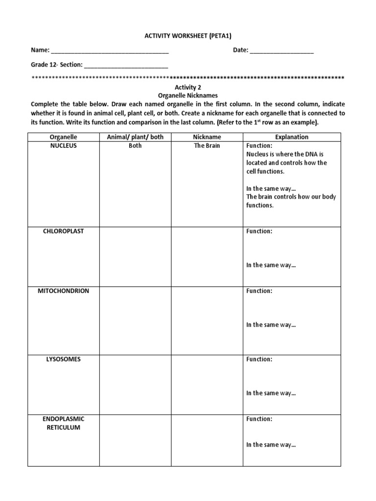 Cells And Organelles Worksheet Promotiontablecovers
