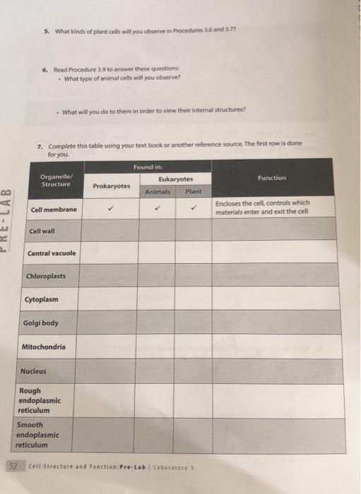 Complete The Following Table Organelle Plant Animal Both Function Animal West