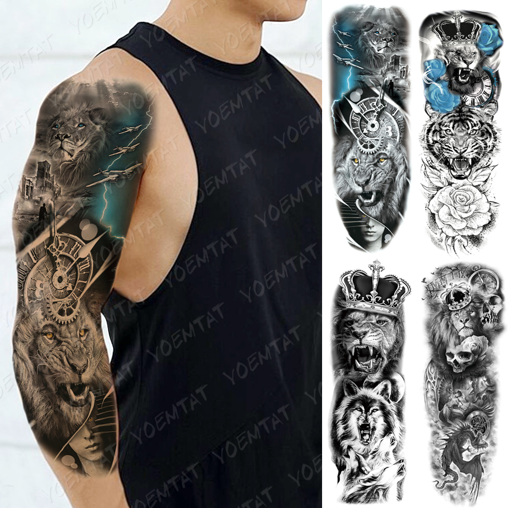 Men Temporary Tattoo Full Arm Sleeve Temporary Lion Tattoos Large King Tattoo Long Sleeve Sexy Fake Tatoo Boys Waterproof Black Temporary Tattoos Aliexpress