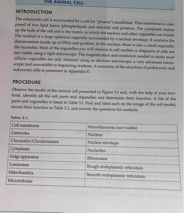 Solved The Animal Cell Introduction The Eukaryotic Cell I Chegg Com